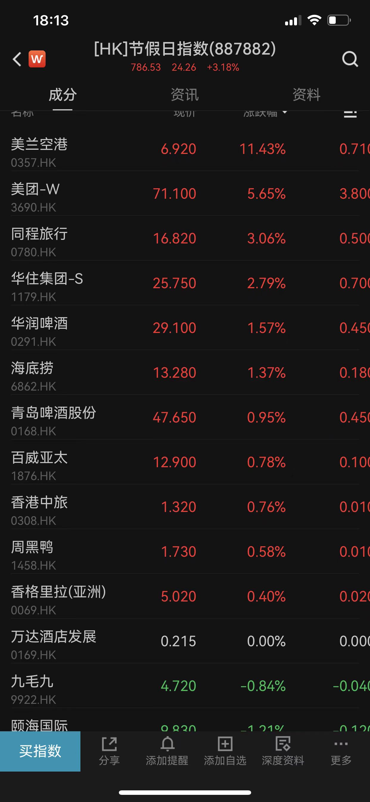 节假日概念股也迎来大涨。消费板块表现强势,卫龙美味涨超12%,燕之屋涨超11%,澜沧古茶涨超10%,百果园集团涨超8%,中国中免升超5%,农夫山泉、华润啤酒、青岛啤酒股份跟涨。