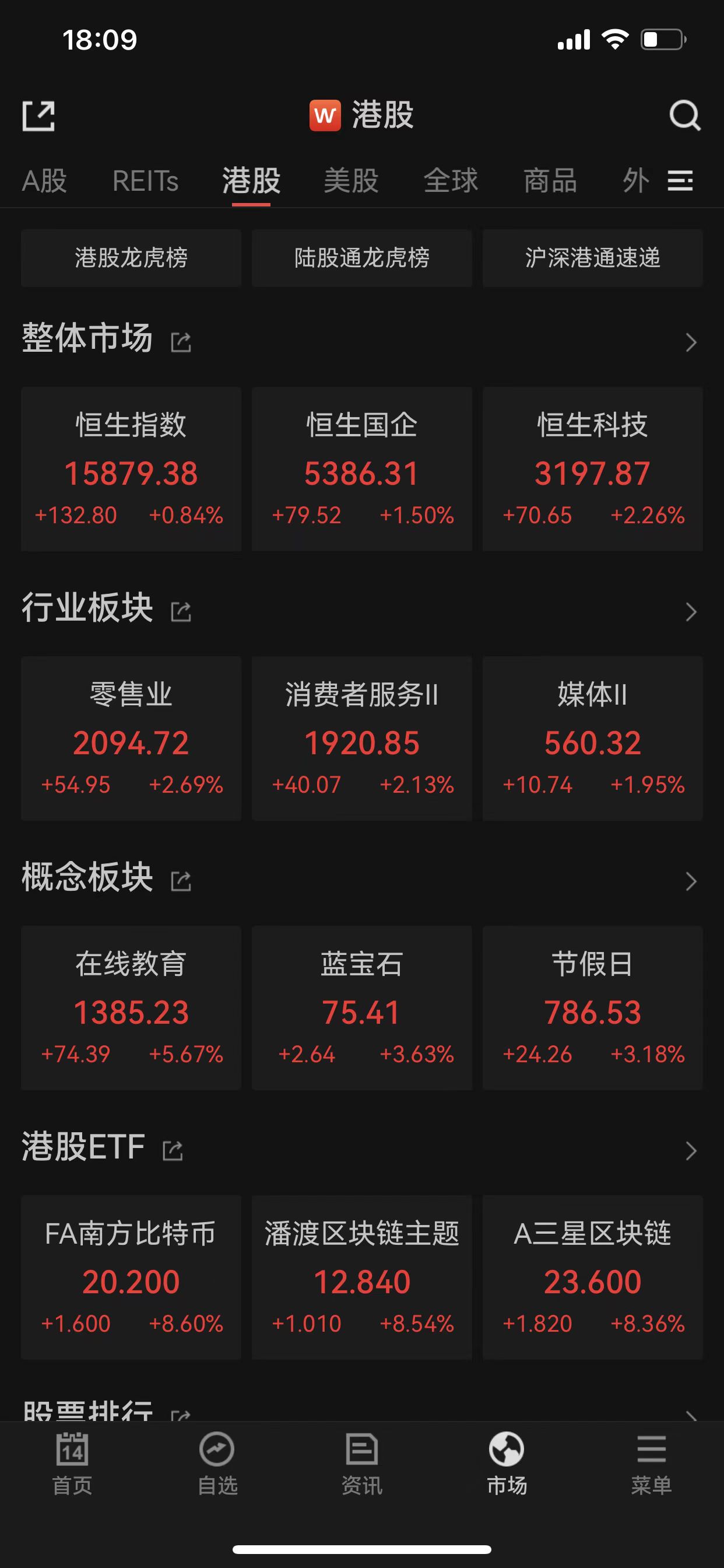 2月14日,港股三大指数低开高走,午后涨幅不断扩大,截至收盘,恒生指数涨0.84%,报收15879.38点;恒生科技指数涨2.26%,报收3197.87点;恒生国企指数涨1.50%,报收5386.31点。